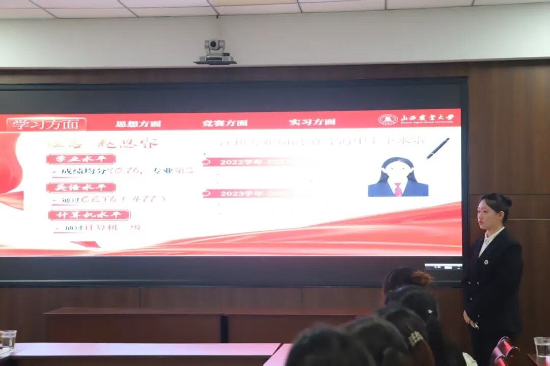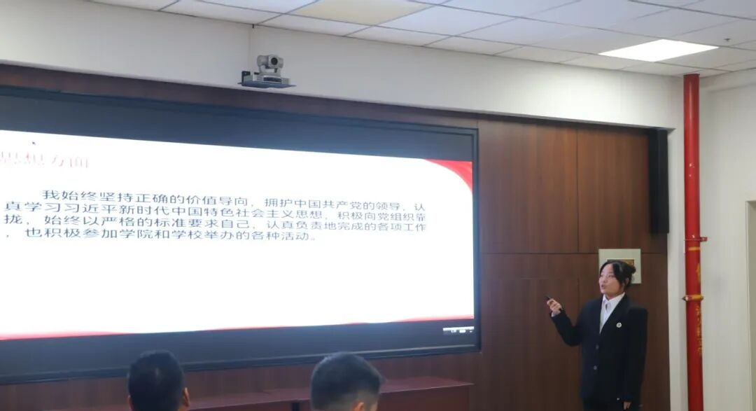 答辩分为个人展示与评委提问两个环节,候选学生按照抽签次序依次登台,分别从个人简介、思想道德、学业成绩、文体活动、学科竞赛、科技创新、志愿服务及综合素质等方面进行个人展示。老师们专注倾听每一位选手的精彩答辩,对候选学生进行综合评议与提问。参赛选手结合自身经历从容应答,展现出良好的综合素养与精神气质。