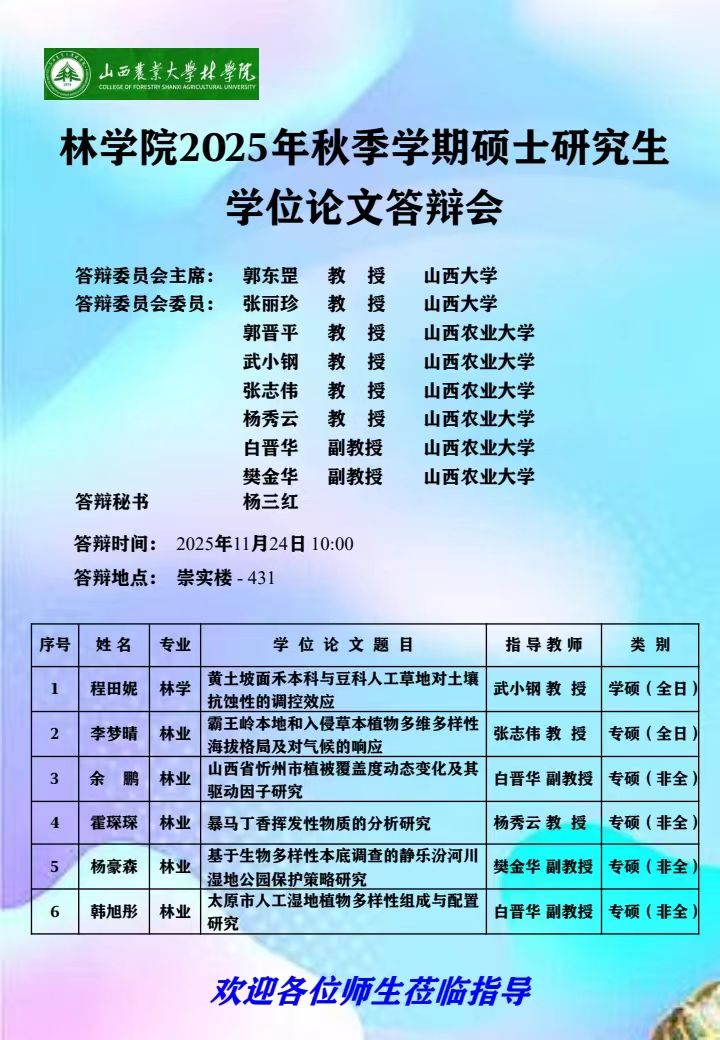 林学院2025年秋季学期硕士研究生学位论文答辩会