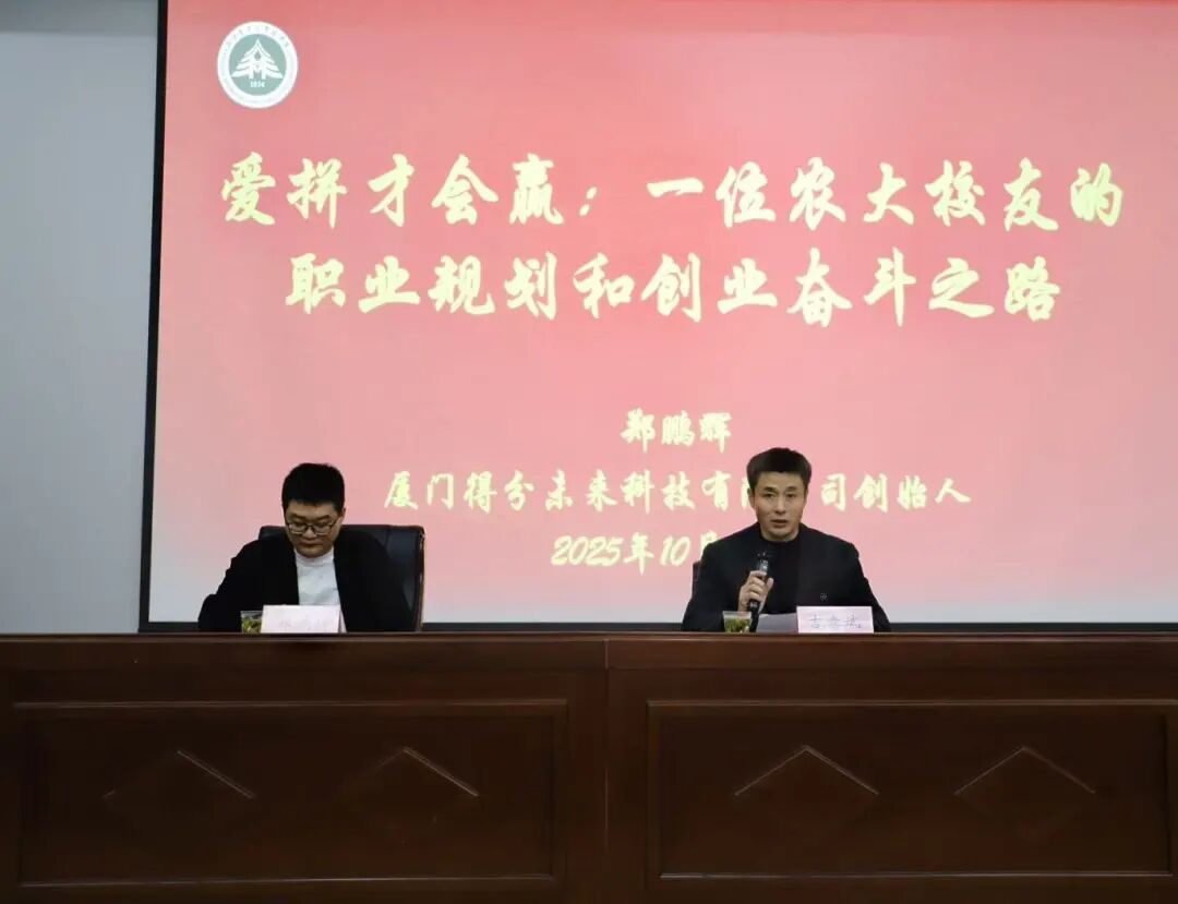 报告会上,郑鹏辉以自身成长经历为切入点,从平凡的起点、职业探索之路、创业征程、公司省外扩展之路和关于管理等五个方面向大家介绍了自己大学以来的职业规划和创业奋斗之路。他鼓励同学们树立明晰的学习目标,主动对标时代需求,在夯实专业基础的同时,不断提升自身综合素养。他强调“唯有脚踏实地的付出,才能收获理想的硕果”,希望同学们树立“爱拼才会赢”的精神,并呼吁大家涵养敢为人先的拼搏精神,主动把握发展机遇,在持续突破中实现自我提升。最后,郑鹏辉还为在场林苑学子送上真挚寄语,共勉奋进。