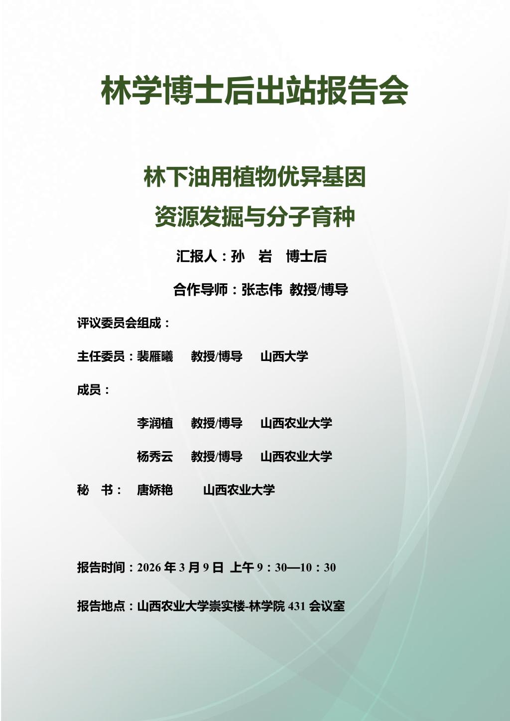 林学博士后出站报告会